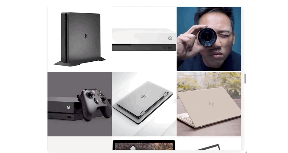 O primeiro exemplo de imagens responsivas neste artigo é flexível. Com um mínimo de 300px de largura, os grid items são automaticamente posicionados de acordo com a largura da viewport.